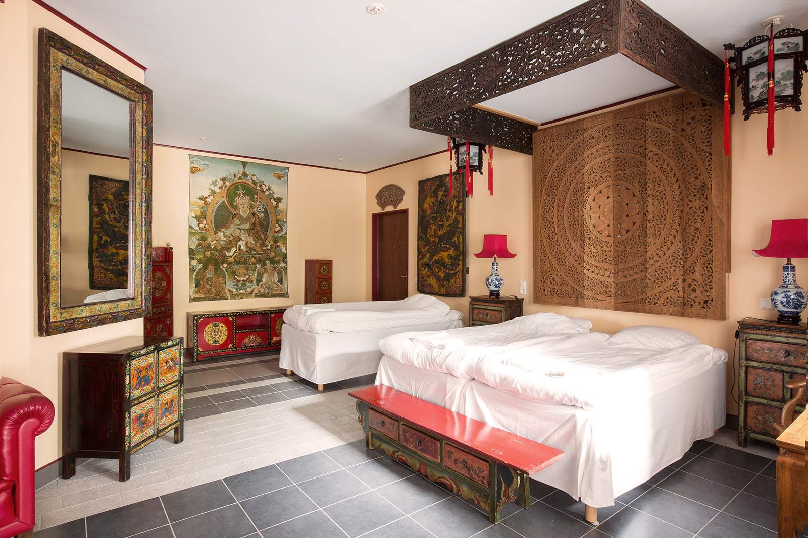 The entire center will be our home during the retreat. It offers beautifully decorated and comfortably arranged facilities, including meditation spaces, comfortable rooms, a restaurant and serene gardens and forests around the center. It has a countless number of Buddhas within and outside of the center. Our participants will be accommodated in spacious double or triple rooms with all required amenities. Each room is decorated uniquely offering a pleasant and restful experience.